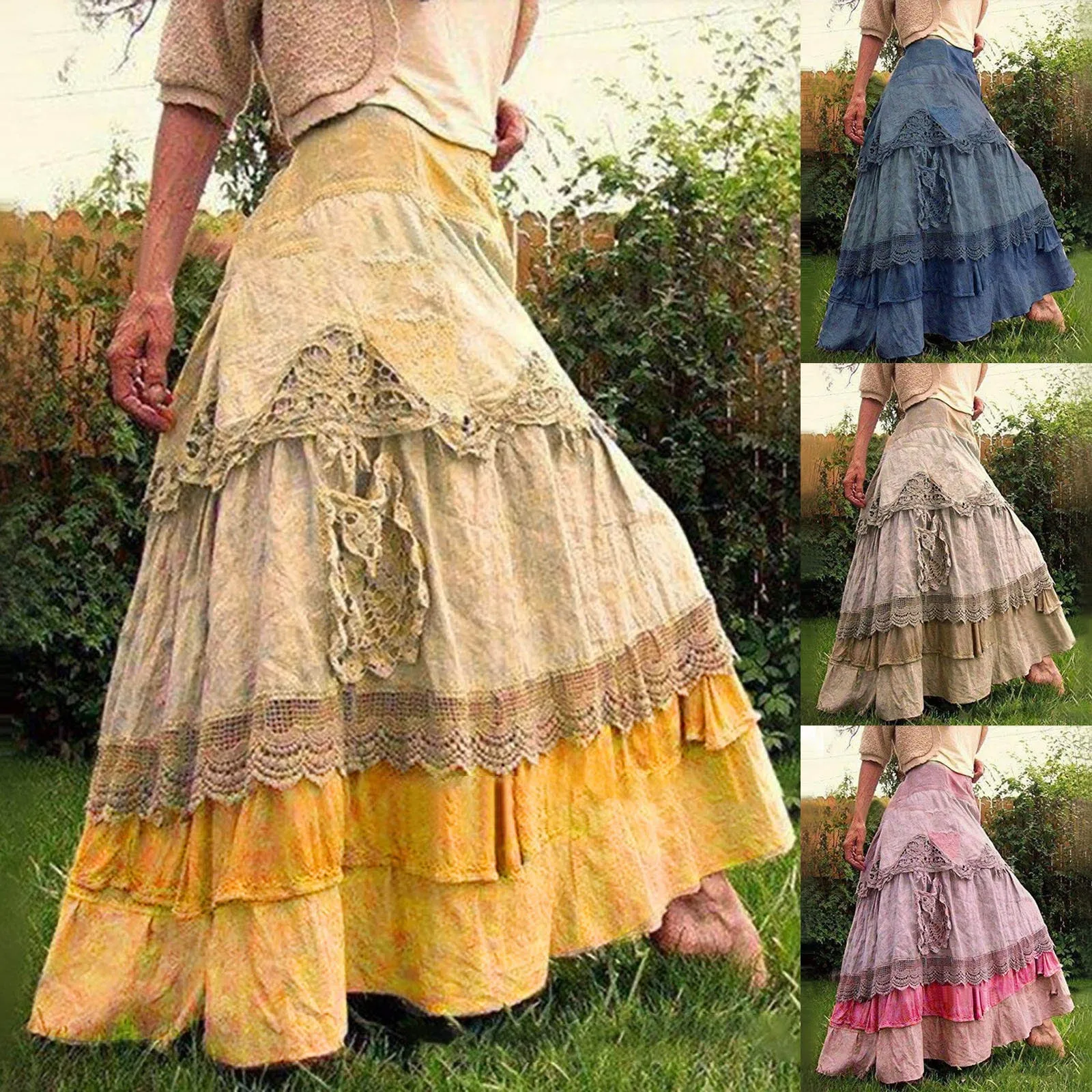Unique Boho Design: These maxi skirts for women features a beautiful combination of boho with tired long lace crafted with net flared cotton. It reaches down to the ankles, and the high waistband of the skirt rests at or above the natural waist. Each patch of our womens skirt is expertly hand-selected for its unique patterns and designs, so no two skirts are precisely same.