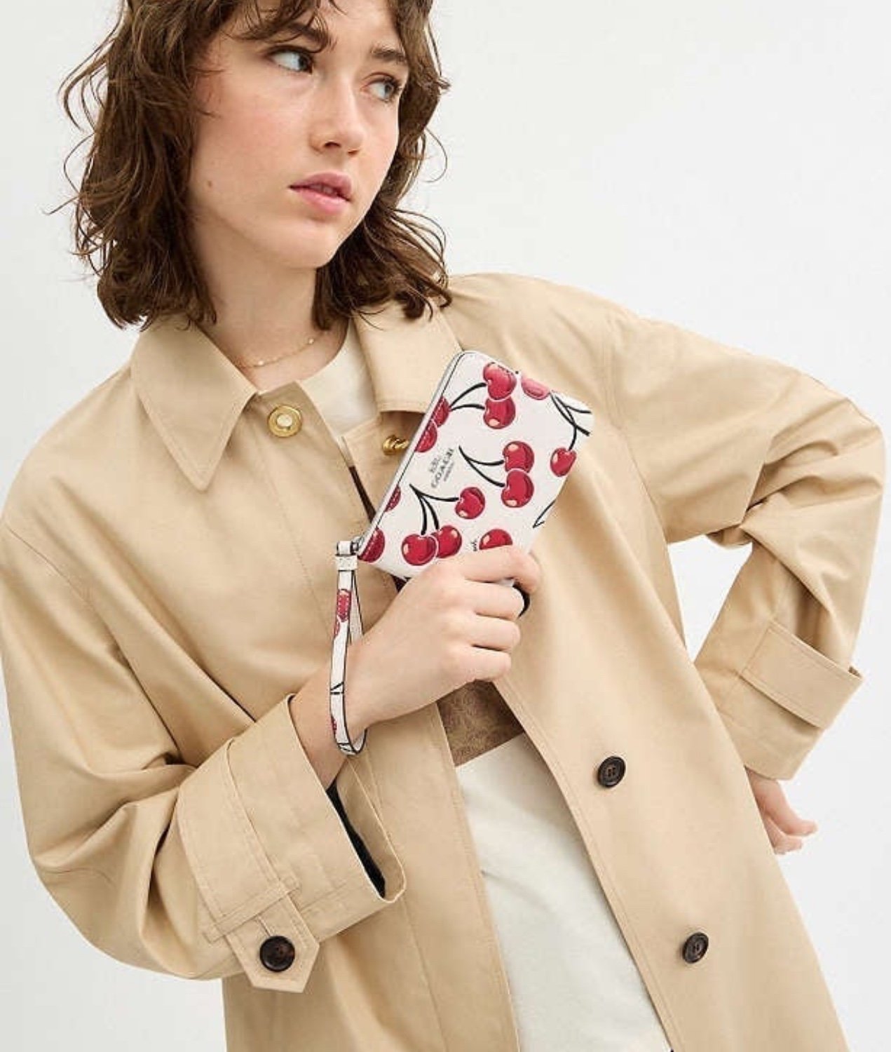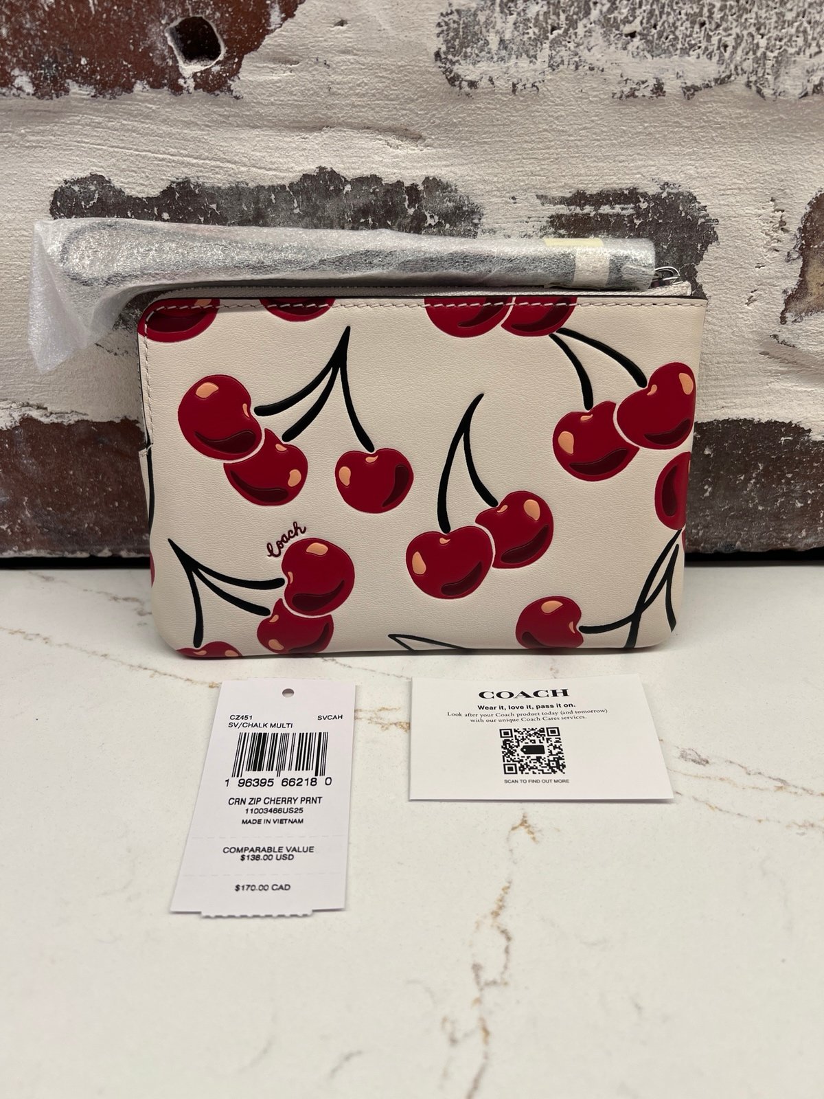 Brand new with tags and in original protective packaging a Coach corner zip wristlet in cherry print