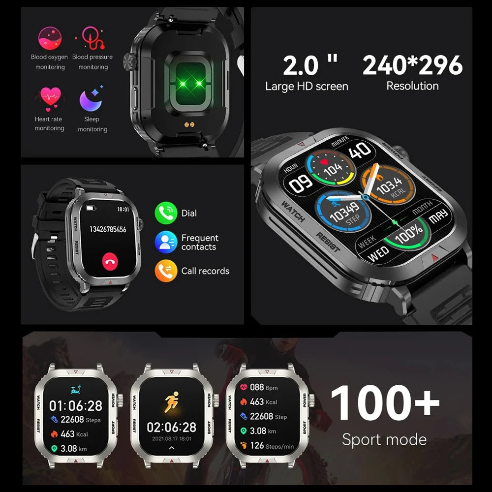 [Ultra-high resolution & Customize your unique style] Smartwatches allow you to easily personalize their surfaces. Its 2-inch HD display features a high resolution of 240 × 296, providing unmatched visibility even outdoors. Through the app, you can access more than 500 customizable watch faces and use images to create personalized watch faces that showcase your unique personality and style.