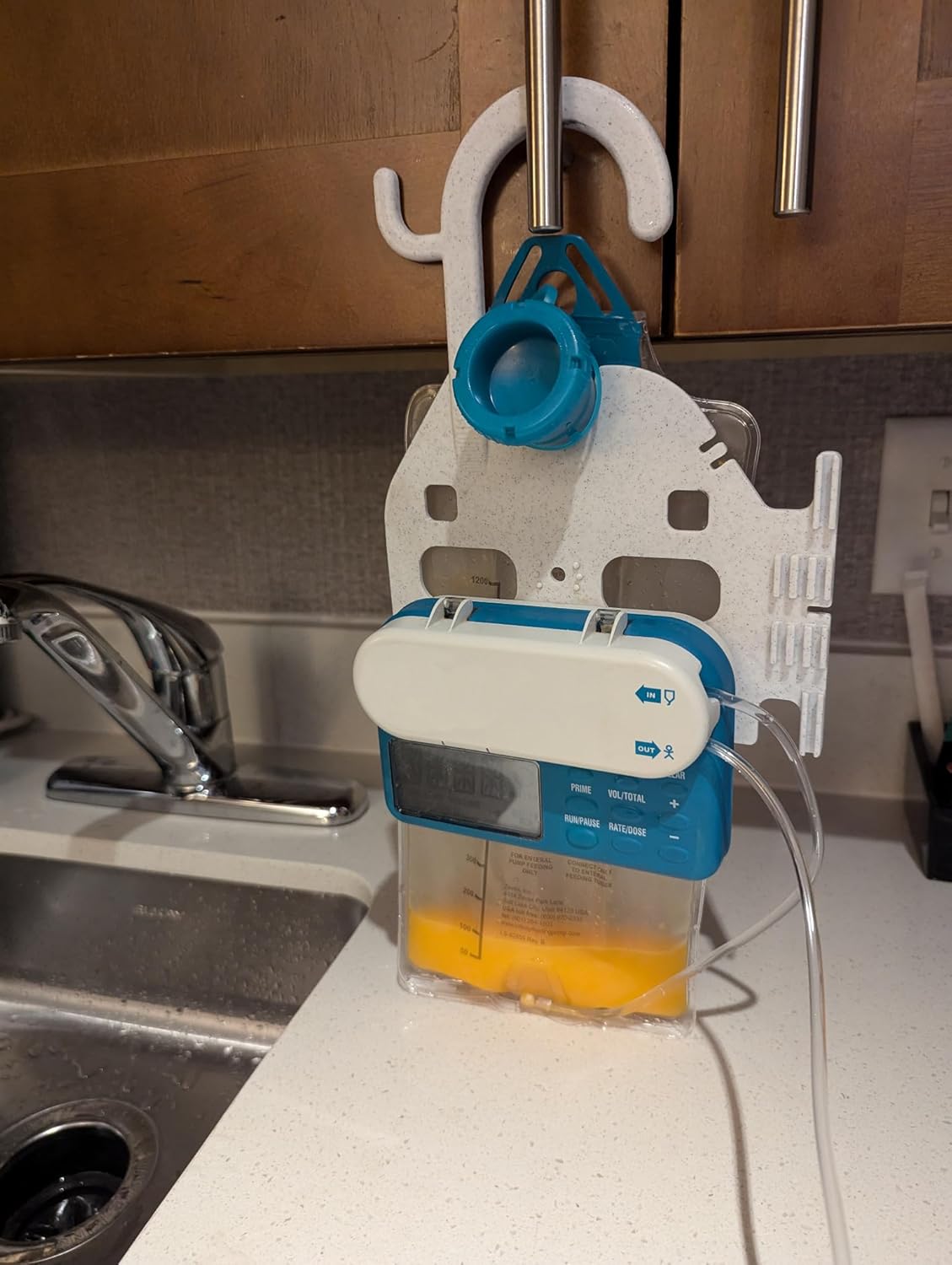 The HelperKat Pump Caddy is a must-have for anyone using an Infinity feeding pump, offering both functionality and convenience. Crafted from durable plastic, this versatile caddy is designed to securely hold both 500ml and 1000ml pump sets, ensuring they stay firmly in place while remaining easy to remove when needed. With specially designed gripper channels to keep tubing neatly organized and tangle-free, the HelperKat Pump Caddy takes the hassle out of managing your feeding setup. A handy accessory hook adds an extra layer of convenience, and the compact design allows for easy storage and portability.