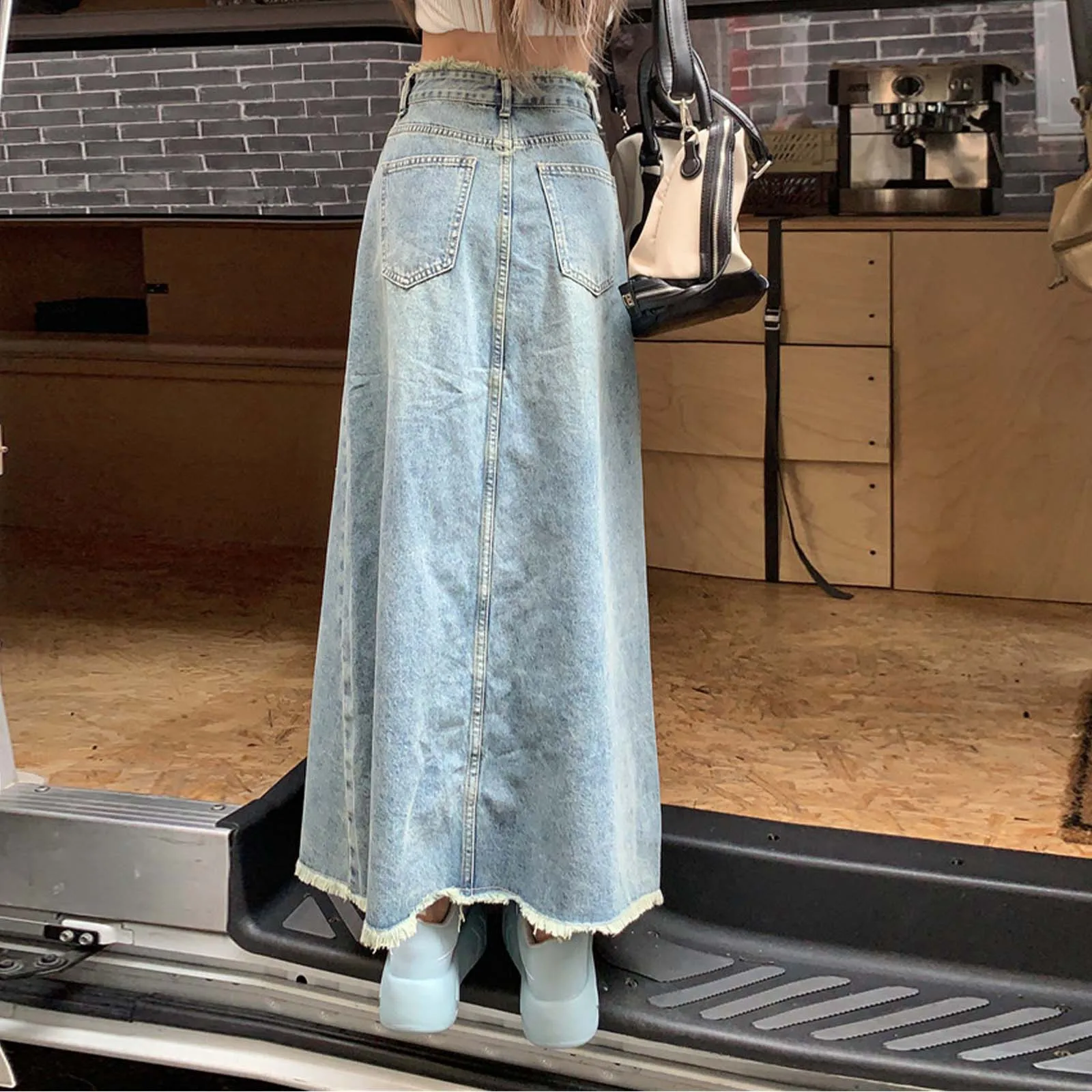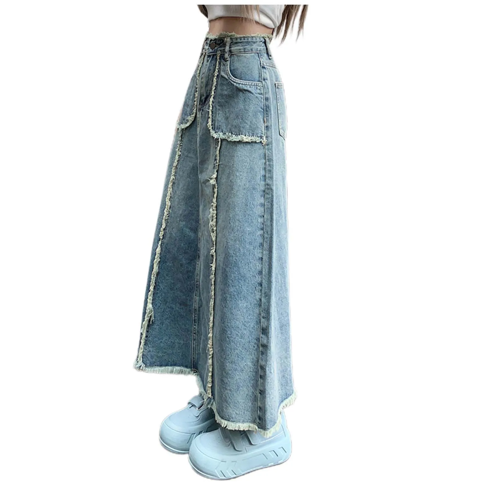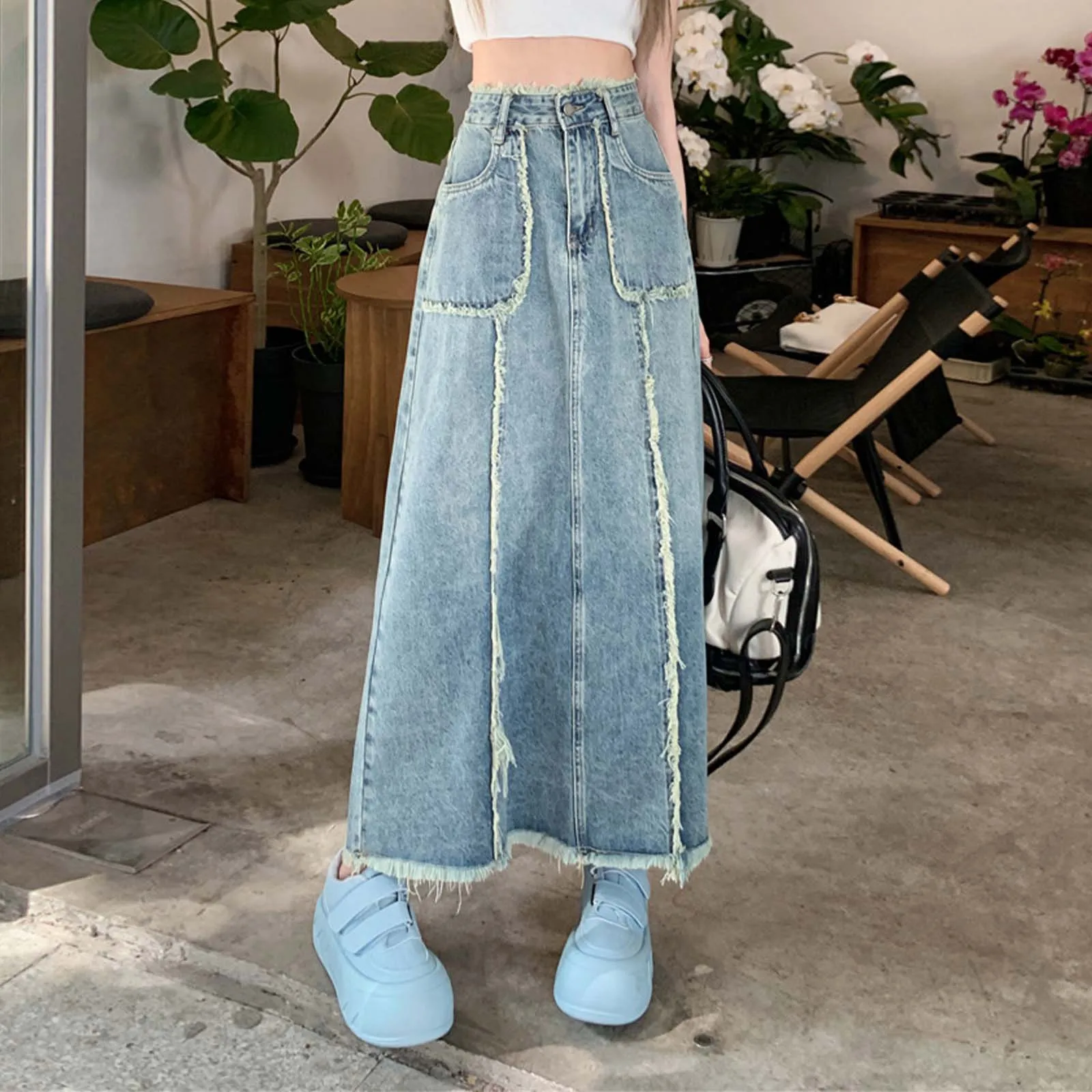 2. A-Line : This high-waisted jean skirt offers versatile style with its flattering A-line design for any occasion.