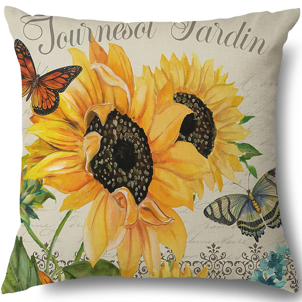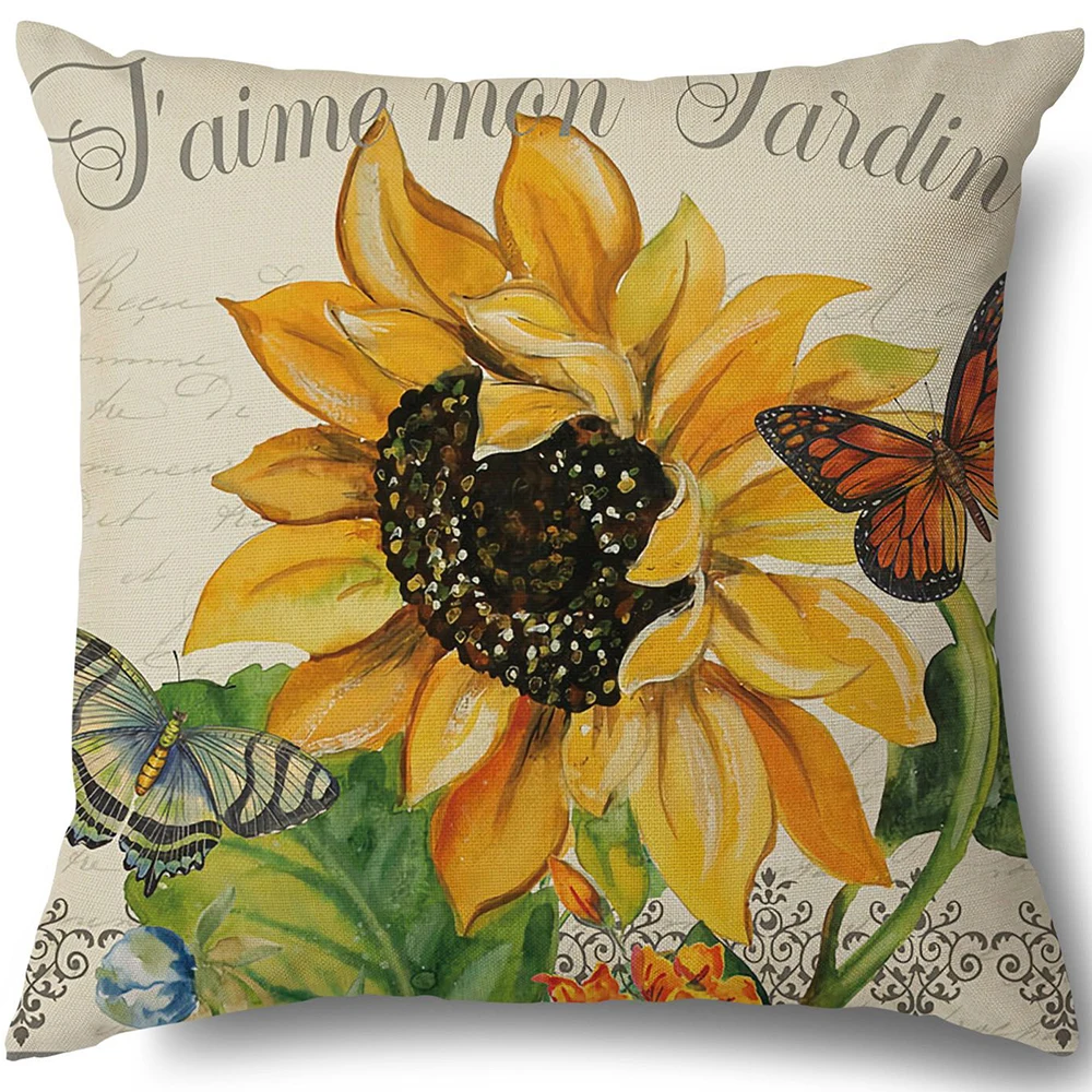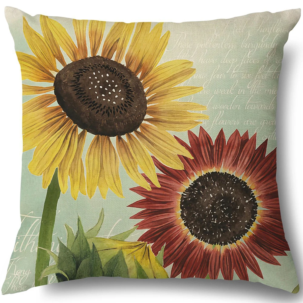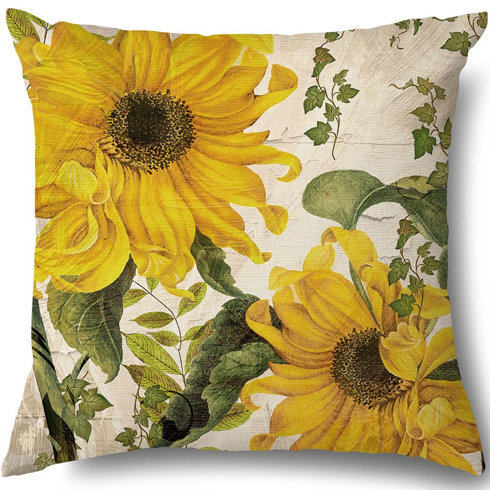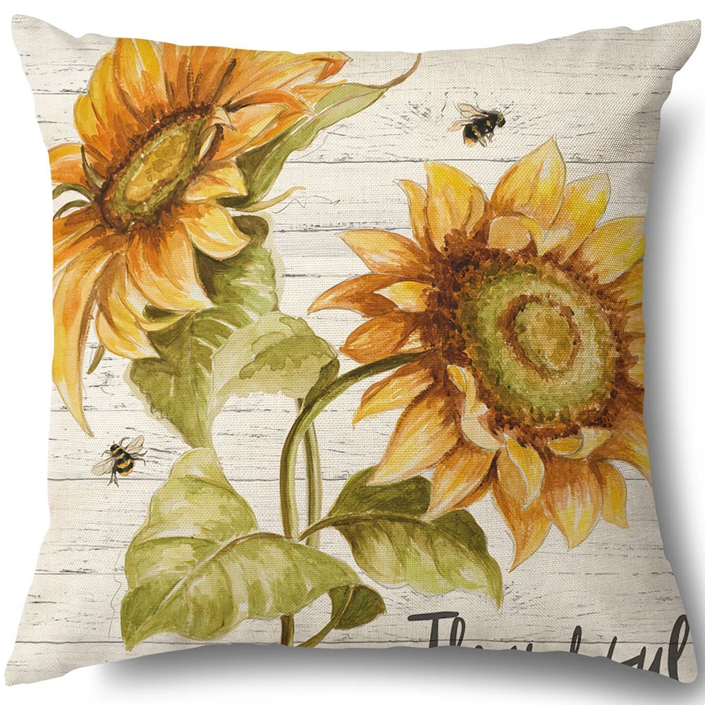 Sunflower Pillow Cover Fall Thanksgiving Decorative Cushion Cover Autumn Farmhouse Home Sofa Decor Pilow Case Flowers Pillowcase
