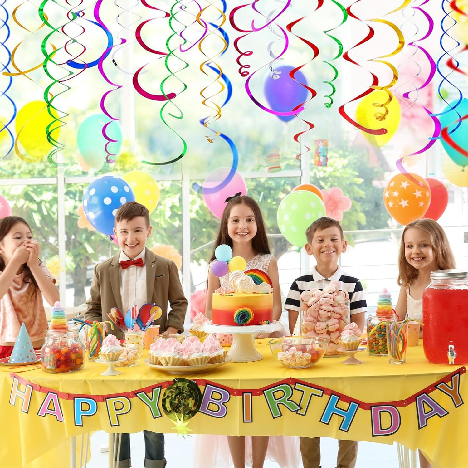 Specification: Material: PVC. Color: 10 different colors(gold, rose gold, silver, red, blue, light blue, green, pink, pink, lilac) Haging length: 70 cm (27.6 inches). Package contains: 60 x Hanging Spirals Grlande Warm Tips: 1. Please note the sharp edges of hanging swirl decorations. 2. You need to separate each hanging swirl. Please take a few minutes to separate them carefully. 3. Due to lighting and screen differences, the colour of the actual product may differ slightly from the pictures. 4. The size is determined by hand, so there may be 1-2 cm deviation.