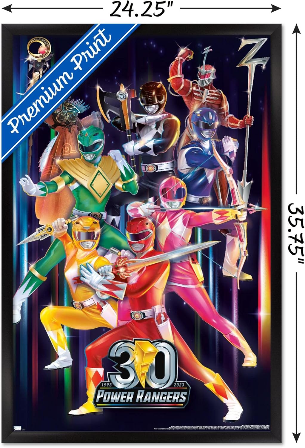 Trends International framed posters are everyone's favorite room decor! The clean, modern design and premium satin finish of this Power Rangers - 30th Group Wall Poster will make a bold wall decor statement in any room. Decorate the bedroom, bathroom, kid's room, living room, office, dorm, and more! Our framed posters are lightweight and easy to hang using the sawtooth hanger so you'll be able to enjoy it in no time. Every one of our framed posters are proudly Made in the USA. Add these decorations alongside the other accessories on your party supplies list too! Trends International's wall posters are the perfect way to dress up your parties. A framed poster makes a great gift as well! Whether it's for a birthday, Christmas, house warming or for your best friend, they'll love receiving a framed poster to show off their style.